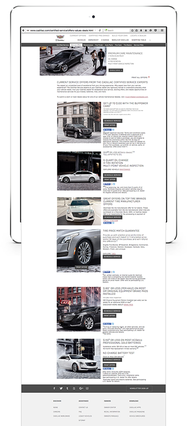 Cadillac Certified Service website